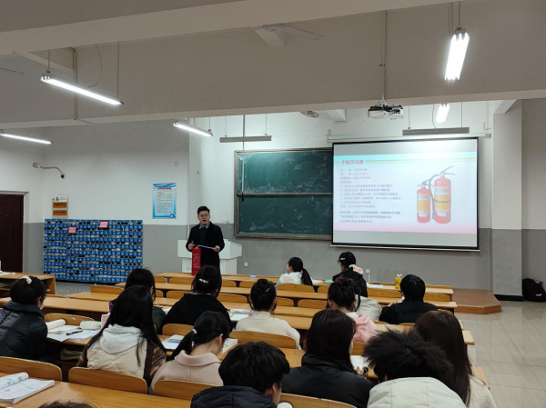 3月12日晚,保卫干部梅景全老师受会计学院邀请为学生进行了消防安全知识讲座。梅景全分别从消防安全基础知识、火灾的预防、火灾的自救与逃生、灭火器材的使用方法、初起灭火等方面进行讲解,并针对学校教室、宿舍、实训楼等场所的做出防火安全要求,强调禁止使用违章电器(电锅、热得快、大功率吹风机等)、禁止电瓶车违规充电及乱停乱放,养成人走断电的习惯。