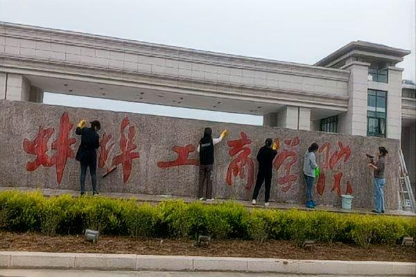 校名石描红焕新颜,擦亮校园“精神名片”
